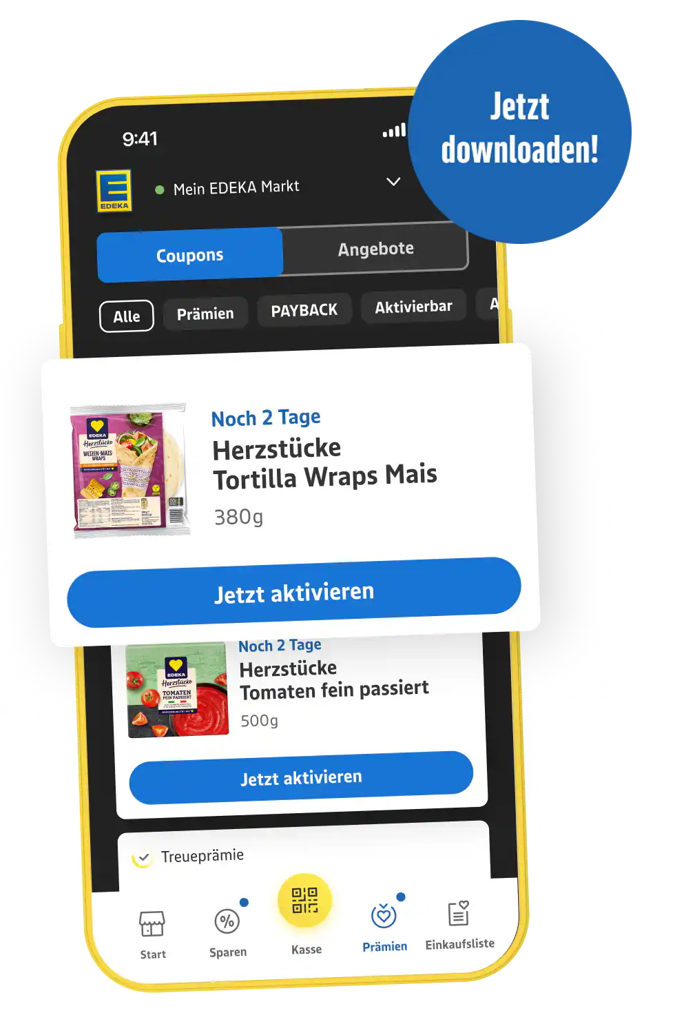 Mit der EDEKA App erhältst du jede Woche exklusive Rabatte 🛒, die du ganz bequem bei deinem EDEKA Nöhring vor Ort einlösen kannst. Ob „zwei kaufen, einen bezahlen“, ein kostenloses Produkt 🎁 oder zum Beispiel 10 % Rabatt auf alkoholfreie Getränke 🥤 – in der App warten regelmäßig wechselnde Coupons auf dich. Wenn du es besonders praktisch magst, kannst du deinen Einkauf direkt mit der App bezahlen 📱💳 – schnell, sicher und ohne Umwege. So wird dein Einkauf bei EDEKA Nöhring einfach entspannter.